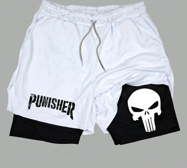 Short Dry-fit Compressão 2 Em 1 Academia Punisher Justiceiro